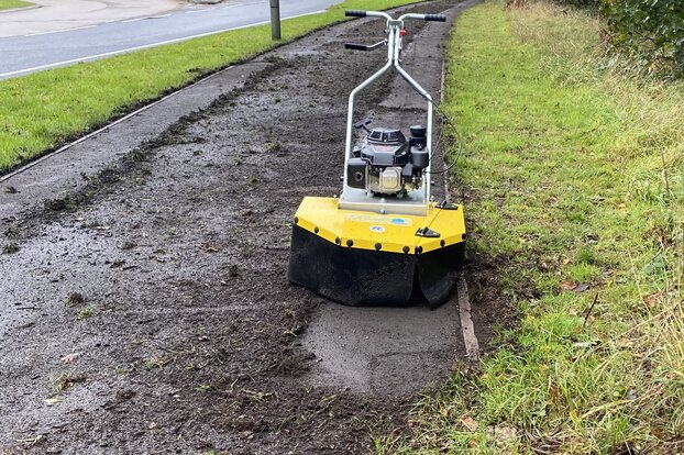 Using our machines in dry weather ensures a clean “splash” messy free finish unlike with pressure washing. We can sweep up the loose material and it can be disposed of or used on the garden as compost.